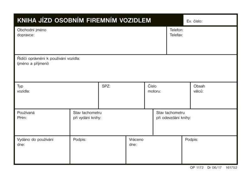 | 1709414 | KNIHA JÍZD OSOBNÍHO FIREMNÍHO VOZIDLA OPTYS A6/32l | 45,76 Kč | 55,37 Kč | 1 ks | |||