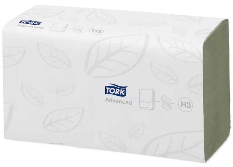Skládané papírové ručníky Tork Singlefold Advanced 290179, 2vrstvé, zelené, systém H3