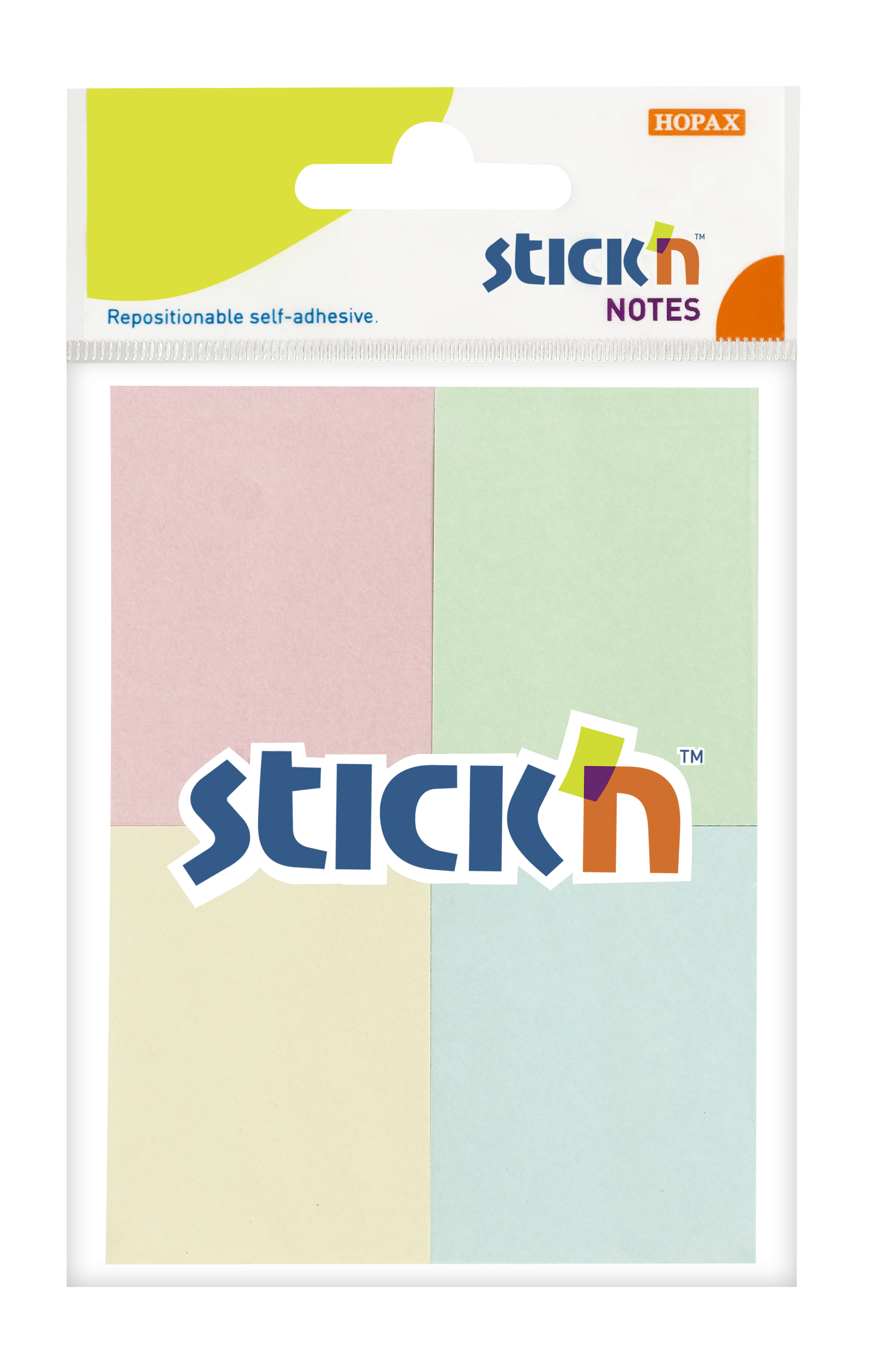 Samolepicí bloček Stick'n by Hopax, 38 x 51 mm, pastel mix, 4 x 50 lístků