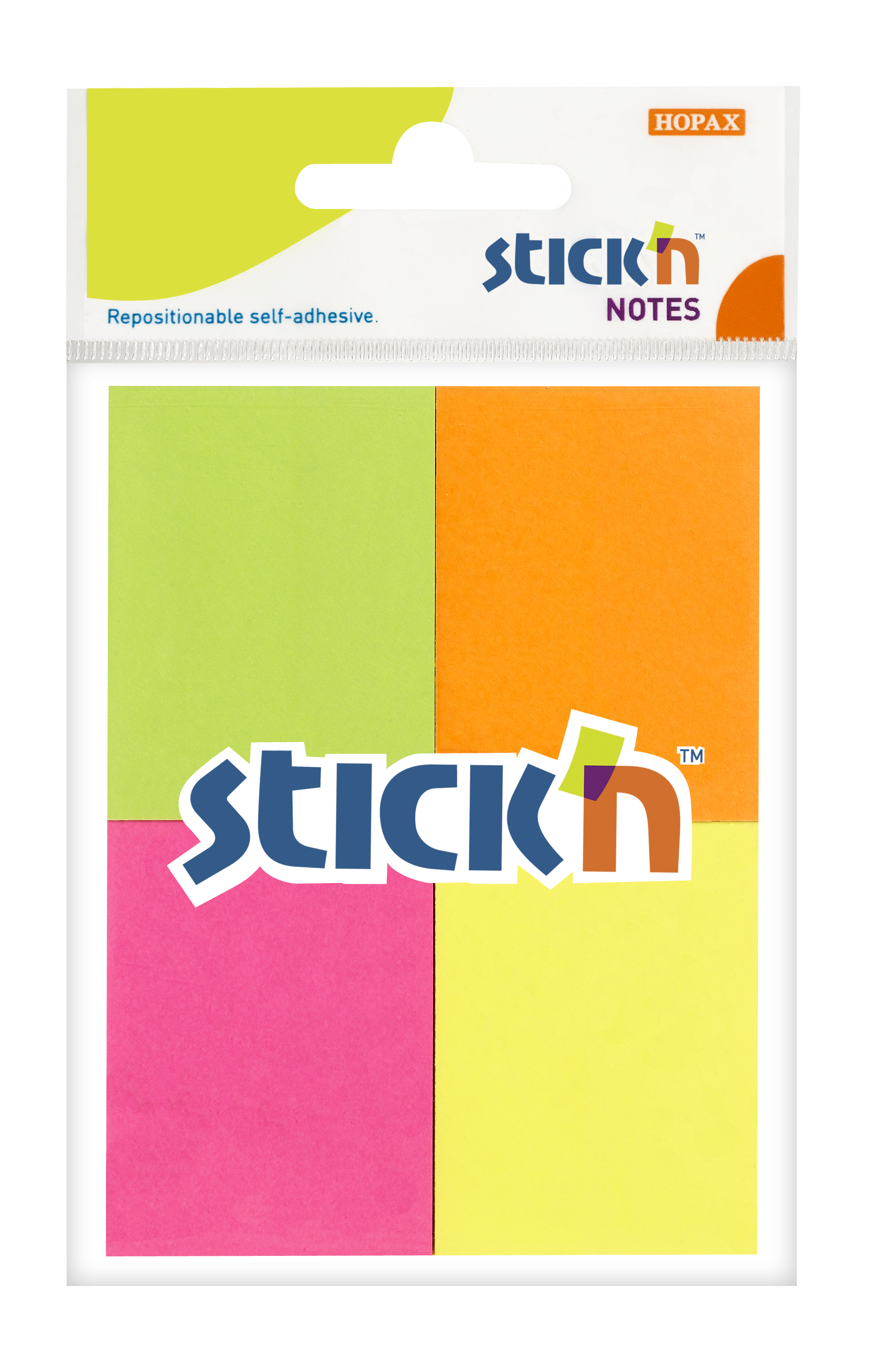Samolepicí bloček Stick'n by Hopax, 38 x 51 mm, neon mix, 4 x 50 lístků