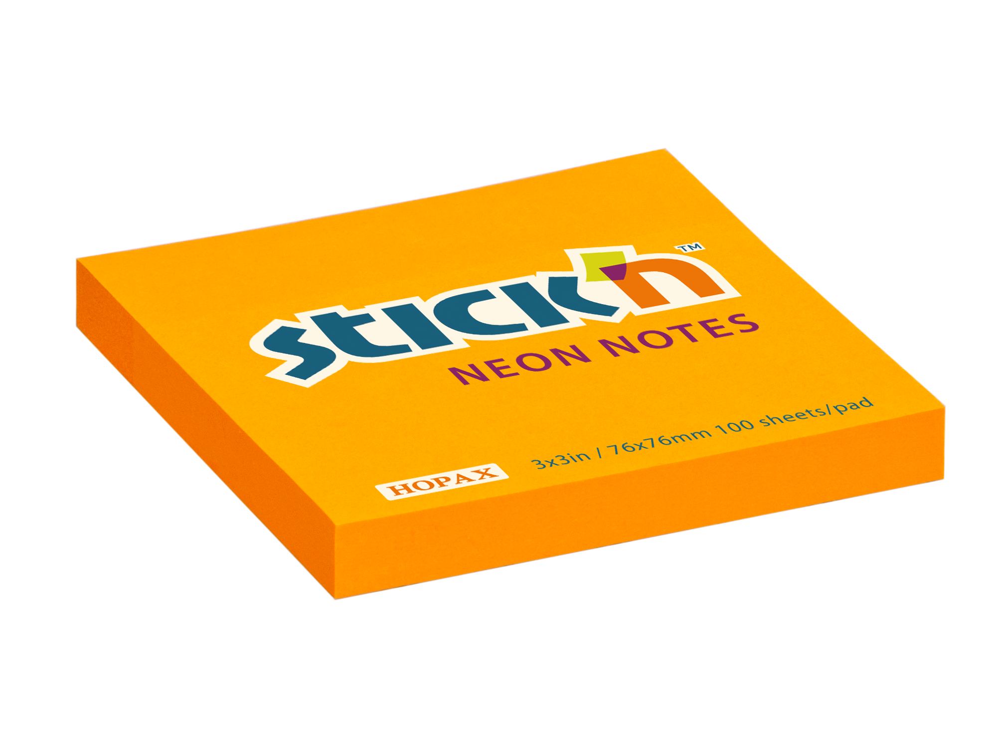 Samolepicí bloček Stick'n by Hopax, 76 x 76 mm, neon oranžový, 100 lístků