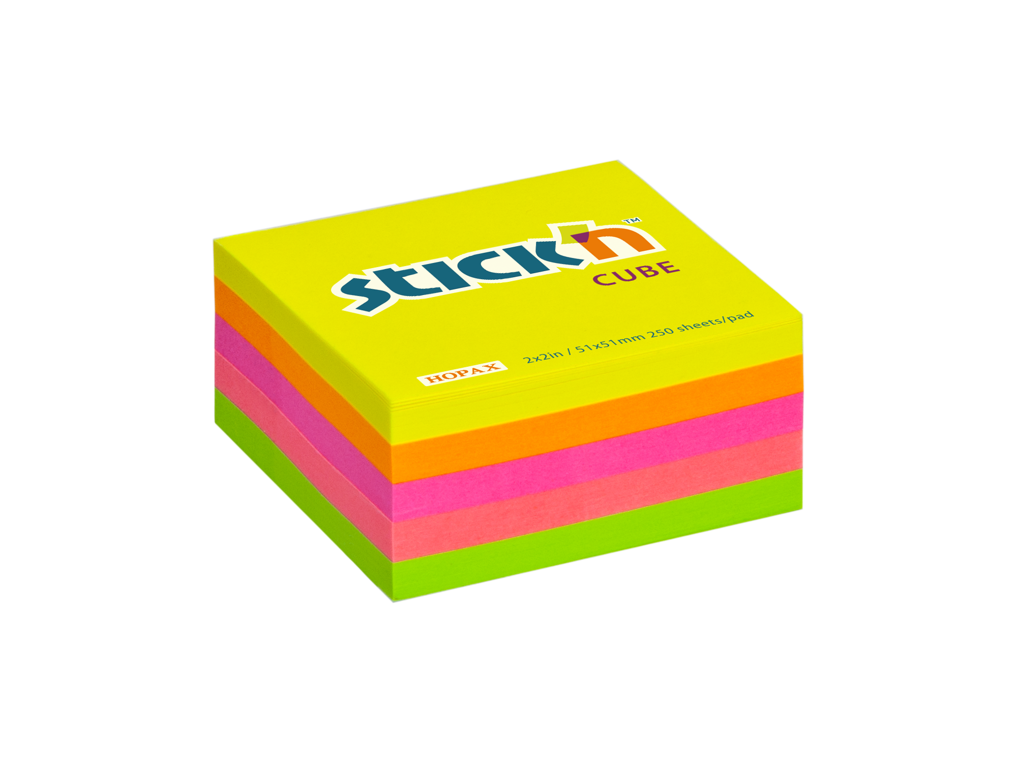 Samolepicí bloček kostka Stick'n by Hopax, 51 x 51 mm, neon mix, 250 lístků