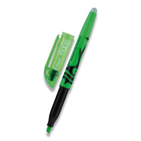 Unikátní přepisovatelný zvýrazňovač. Jedinečný výrobek, ideální nejen pro školáky. Speciální inkoust - můžete zvýrazňovat, mazat a opět zvýrazňovat tolikrát, kolikrát chcete. Zvýraznění zneviditelníte zahřátím na 60 °C, které vznikne třením („gumování“) plastového zakončení zvýrazňovače na papíře. Znovu se objeví při teplotě nižší než -15 °C. Nepoužívejte FriXion a FriXion Light společně. Píše podle barvy těla. Šířka stopy 3,8 mm.