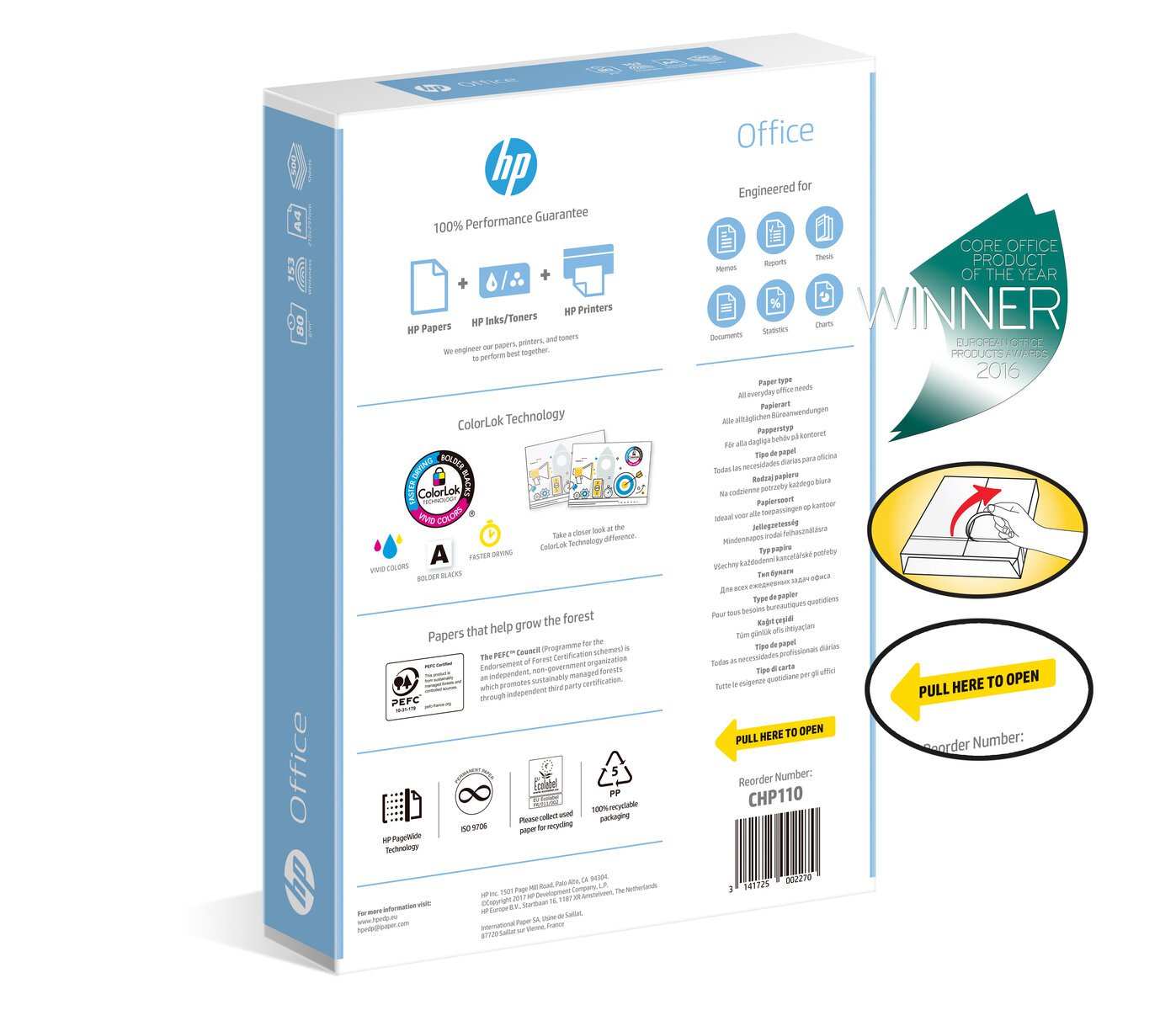 Office Paper je kvalitní papír pro každodenní použití pro vysokorychlostní tisk a kopírování. Rychlý průchod strojem, vysoká odolnost proti zasekávání při vysoké rychlosti tisku a kopírování. Povrch papíru zajišťuje kvalitní a ostrý tisk. Minimální prašnost.