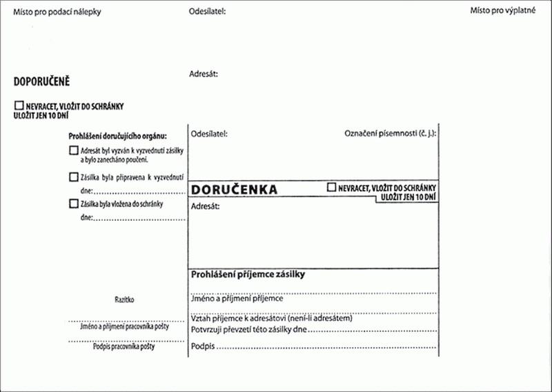 PO DORUČENKA B6, BÍLÁ samopropisovací, samolepící, s poučením