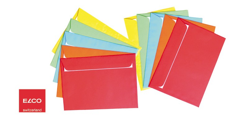 Barevné obálky ELCO, samolepící s krycí páskou. Formát C6/5 (DL), rozměry: 229 x 114 mm.