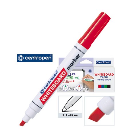 Je určen pro psaní na bílé smaltované tabule, PVC, sklo, porcelán. Inkoust je za sucha stíratelný, světlostálý. Náplň je zdravotně nezávadná. Klínový hrot, šíře stopy 1 - 4,5 mm. Skladujte ve vodorovné poloze.