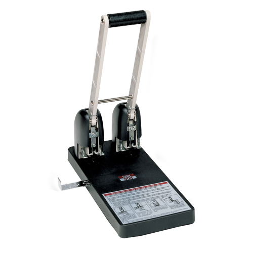 Blokový celokovový děrovač Děrovač s kapacitou až 150 listů, průměr otvoru 5,5 mm, rozteč otvorů 80 mm. Kovový příložník.