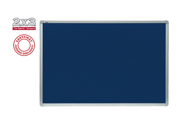 Tabule textilní s filcovým povrchem obsahující nehořlavé bezpečnostní složky s aluminiovým rámem a sadou pro upevnění na zeď.