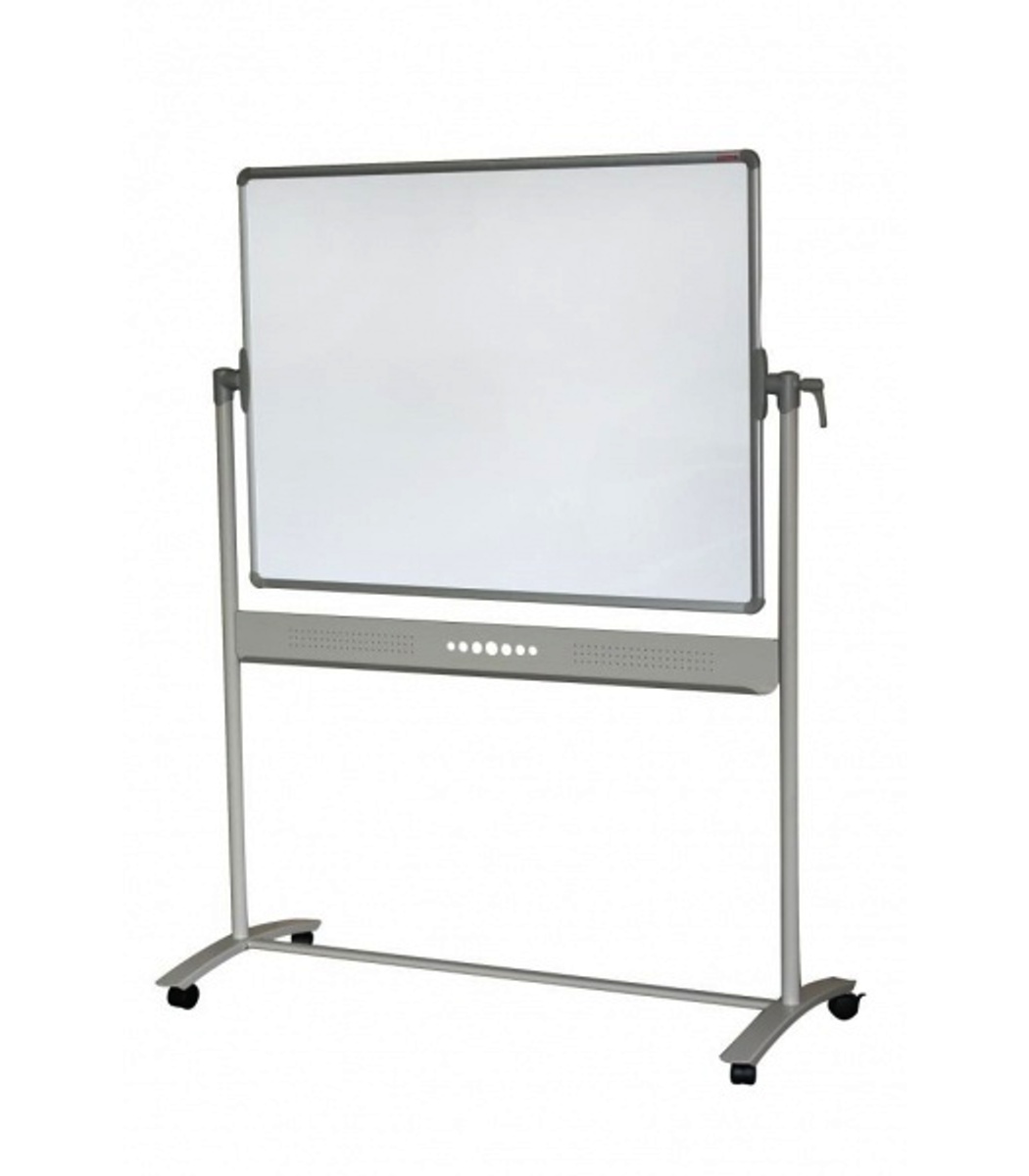 Magnetická otočná tabule na mobilním stojanu, oboustranně popisovatelná. Dva druhy povrchů – lakovaný a keramický. Lakovaný vhodný do kanceláří a keramický povrch vhodný do škol a školících center s vysokou frekvencí používání. Keramický prášek vypálený při 850°C. Doživotní záruka na povrch. Hliníkový mobilní stojan. Čtyři uzamykatelná pojezdová kolečka. Plastové uchycovací trny pro připevnění flipchartového bloku. Držák na popisovače součástí balení.