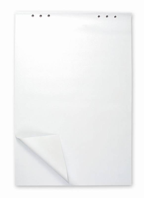 Blok pro flipcharty, bílý křídový papír odolný proti propisování, 10 děr pro universální použití, 25 listů.
