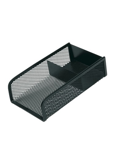 Kancelářský odkladač kombinovaný na poznámkové bločky a kancelářské sponky. Provedení v designu „drátěný program“.