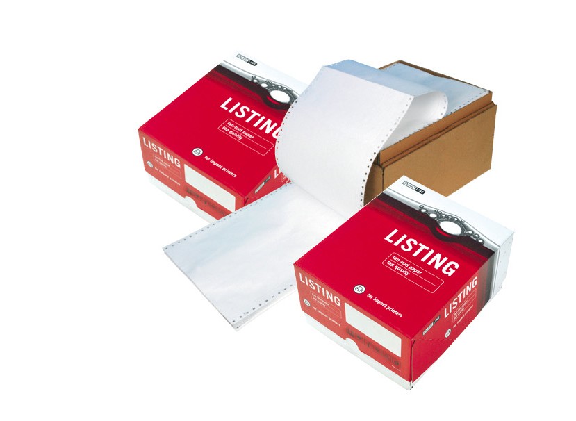 Tabelační papír 1+1 (originál a 1 kopie) v nekonečném provedení s bočním děrováním k založení do vodícího mechanismu tiskárny. Oddělitelná boční perforace, není-li uvedeno jinak. Balení 1000 složek v krabici.