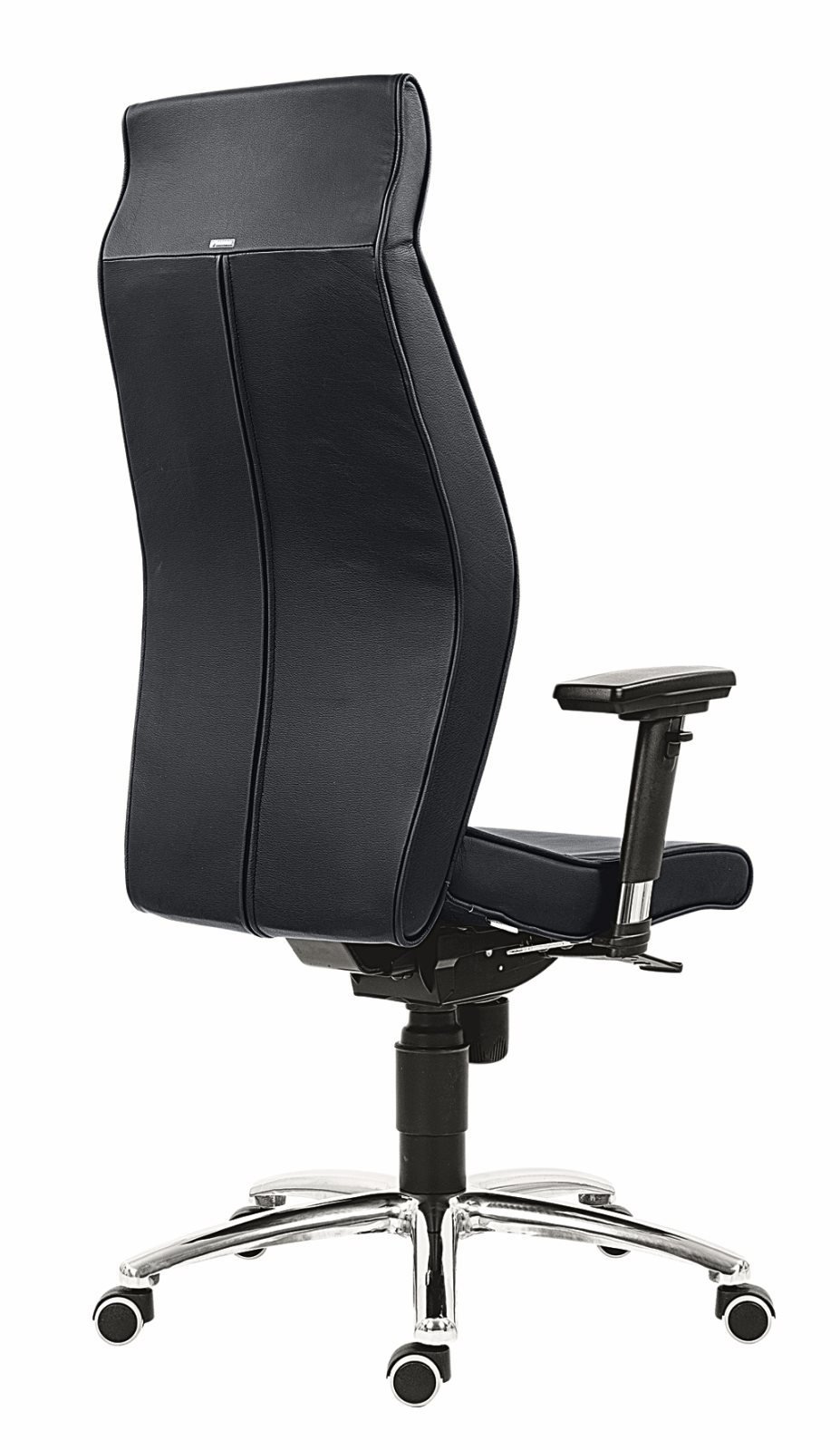 extra vysoký opěrák, ergonomické tvarování sedáku a opěráku, čalounění ze studené pěny, vyráběné vstřikováním do formy zaručující vysokou životnost a tvarovou stálost, synchronní mechanismus s nastavením síly protiváhy, ALU leštěná báze, kolečka s gumovou obručí pr. 50 mm pro všechny typy podlah, výškově nastavitelné područky se třemi funkčními nastaveními (AR08 C), nosnost 160 kg, český výrobek, záruka 60 měsíců