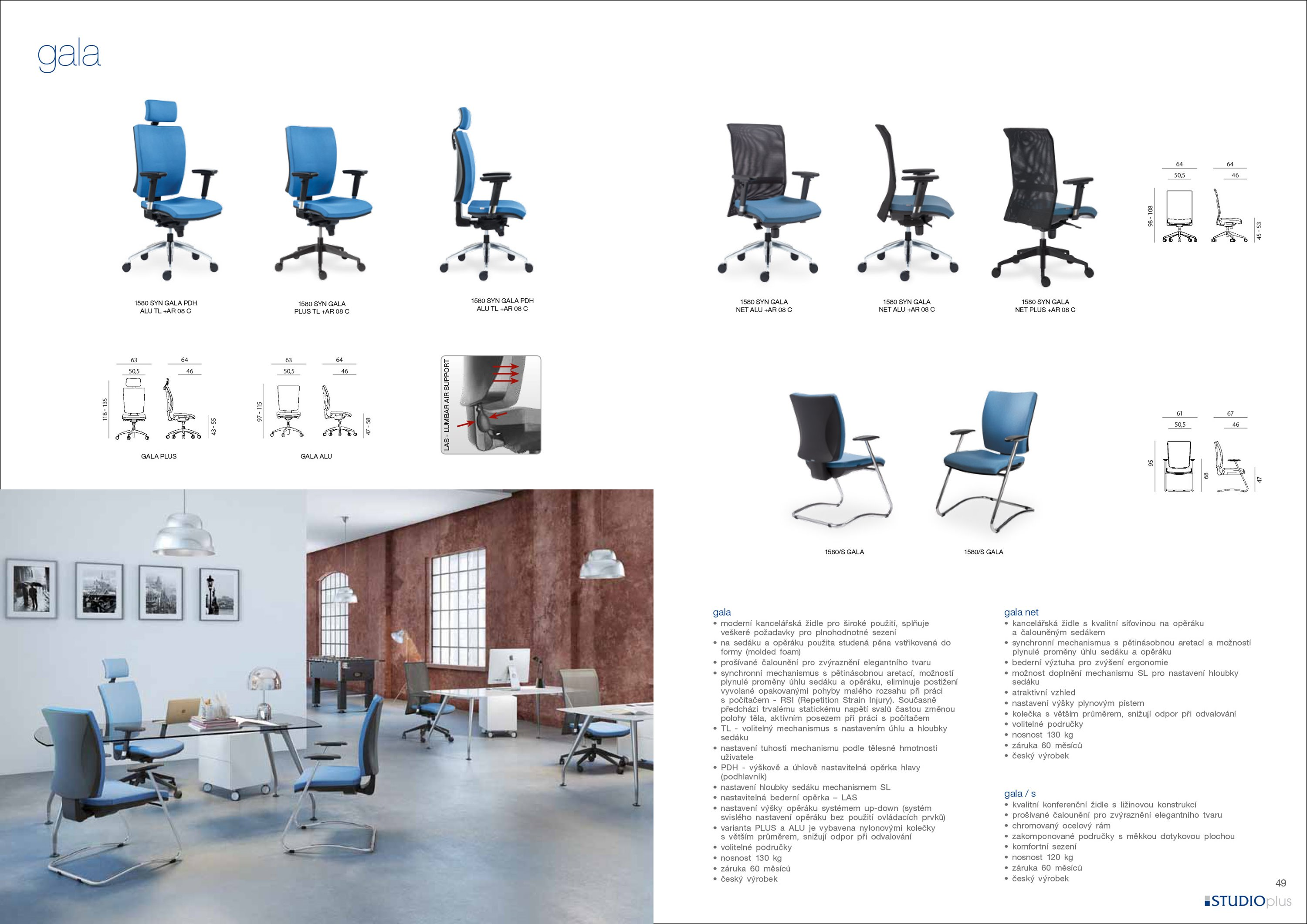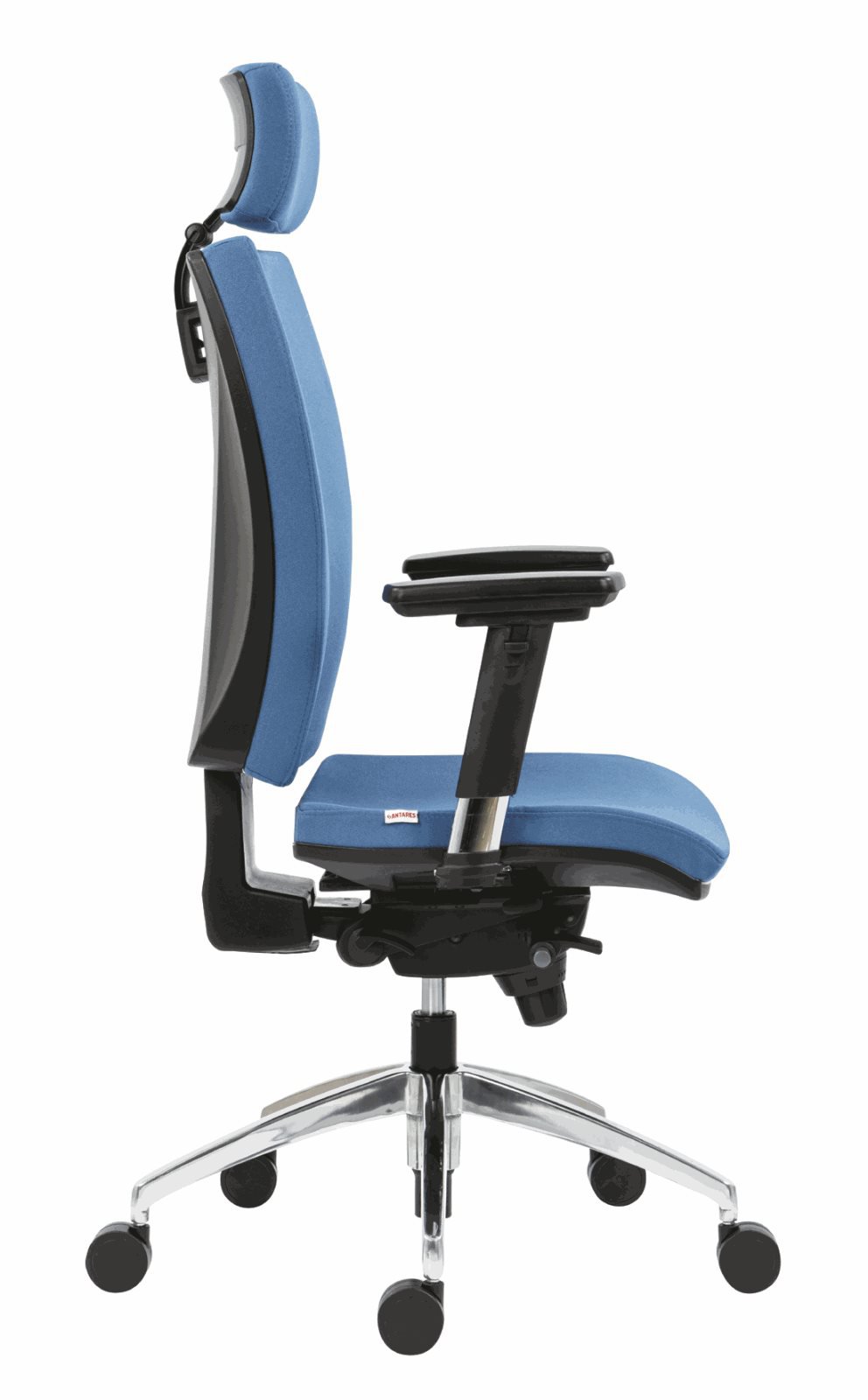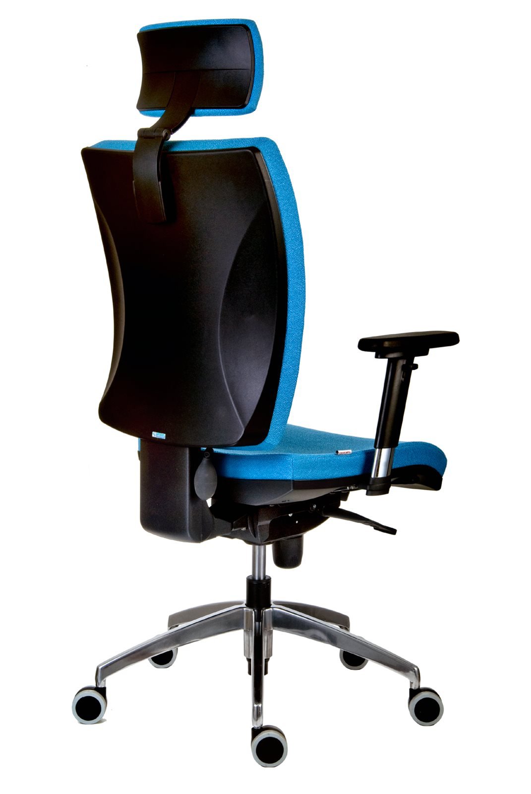 čalouněná židle, synchronní mechanismus s čtyřnásobnou aretací, automatickým nastavením síly protiváhy a nastavením hloubky sedáku, výškové nastavení opěráku mechanismem up-down, moderní plastová pyramidová báze, nový pohodlnější sedák z vrstvené PU pěny, možnost bederní regulovatelné opěrky LAS, volitelné područky, kolečka pr. 60 mm pro měkké podlahy, nosnost 150 kg, český výrobek, záruka 60 měsíců