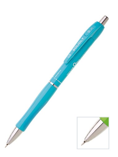 Oblíbená propisovací tužka SOLIDLY NEON. Úchop je zdoben gumovými oválky v odstínu propisky. Je zdobena stříbrným proužkem. Na těle propisky jsou stříbrné nápisy. Náplň tužky je s mikrohrotem, modá stopa.