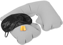 Cestovní set s nafukovacím polštářkem za krk, maskou na oči a špunty do uší. Dodáváno ve stejně barevném sametovém obalu.