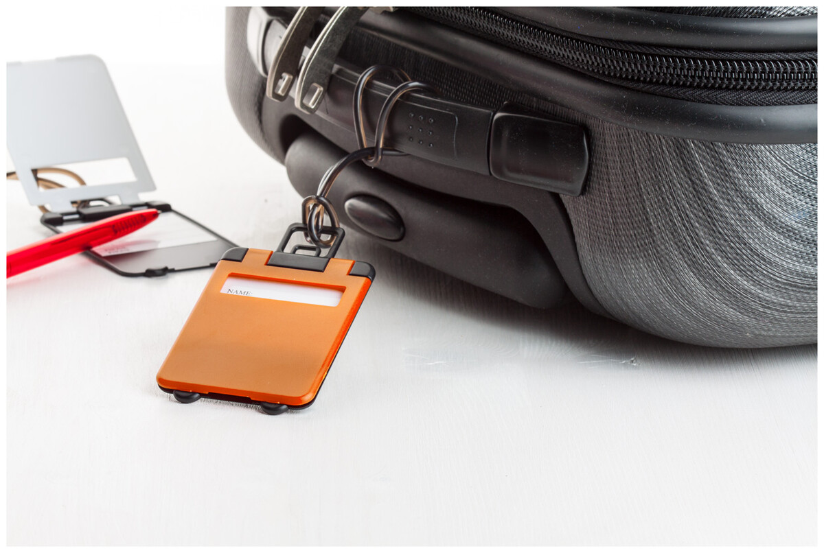 Plastová visačka na zavazadla.