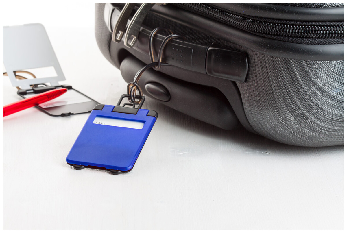Plastová visačka na zavazadla.