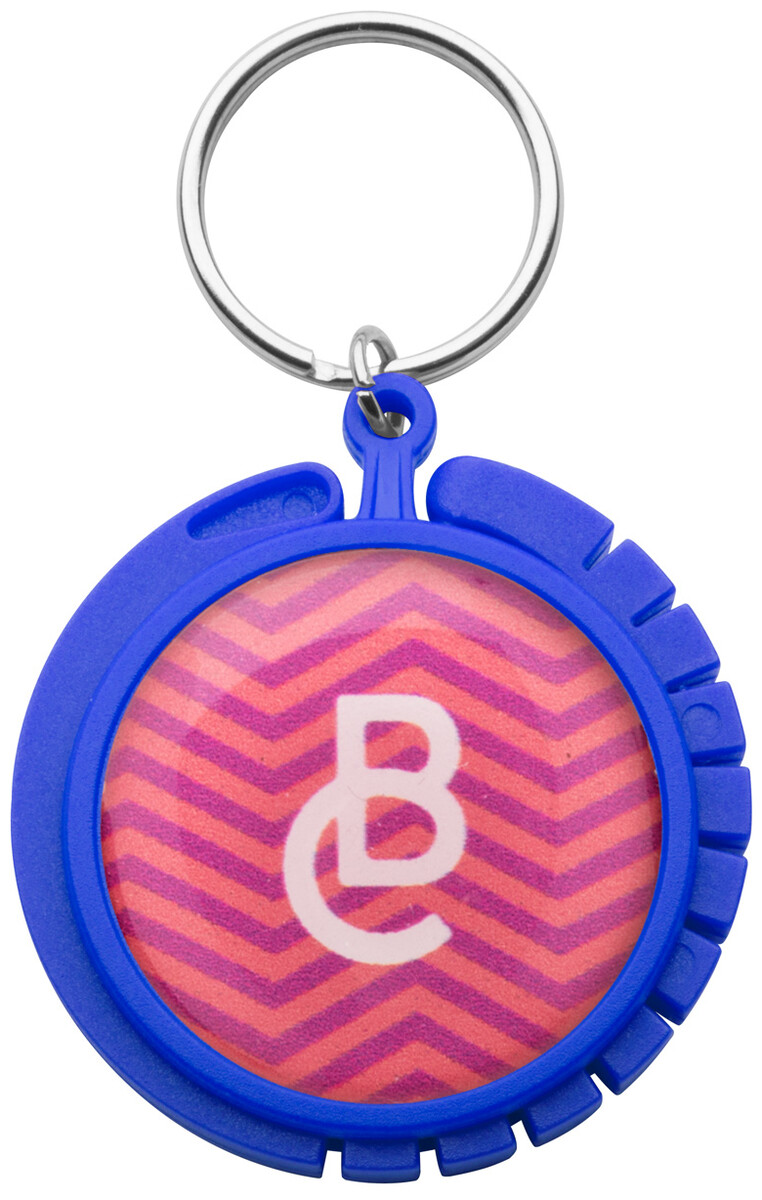 Plastový věšák na tašky s kovovým kroužkem na klíče. Vhodný pro epoxy potisk.