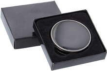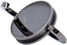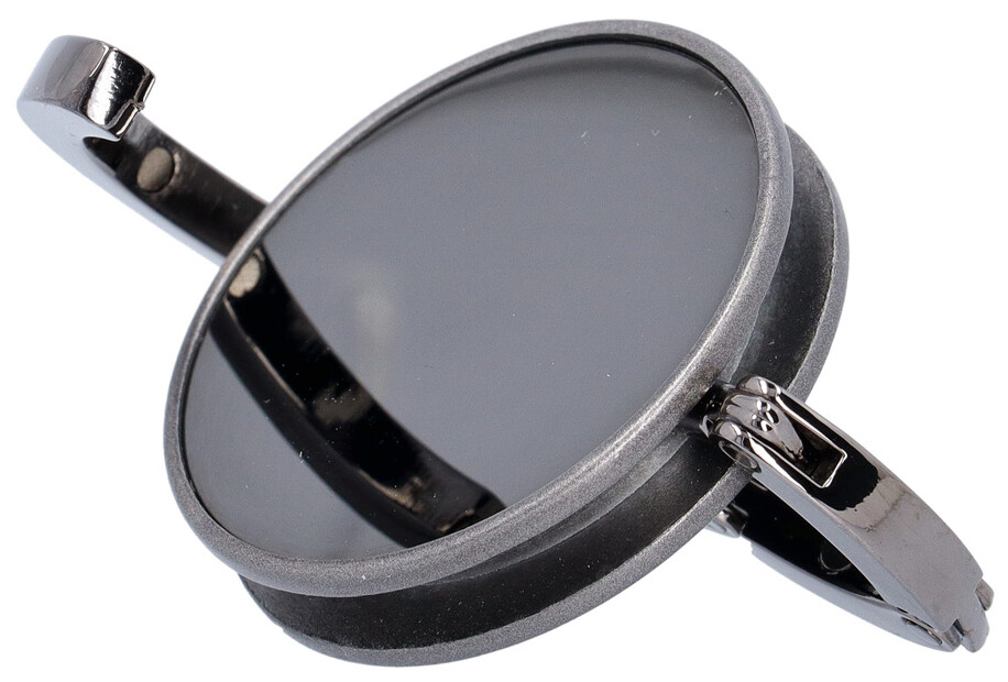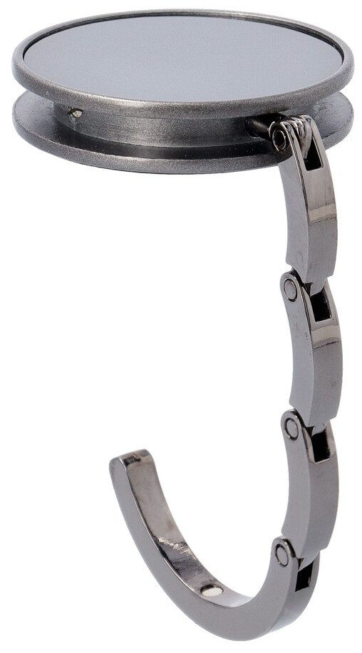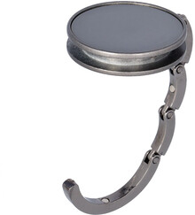 Kovový věšáček na tašku v barvě gun metal s lesklým povrchem. Magnetické zavírání.