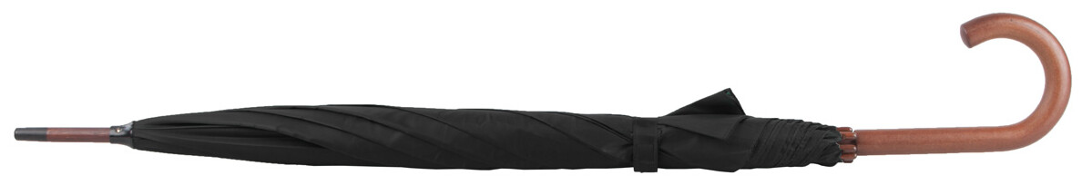Automatický, 8mi panelový deštník s kovovou konstrukcí, dřevěnou tyčí, držadlem a špičkou. Materiál: 190T polyester.