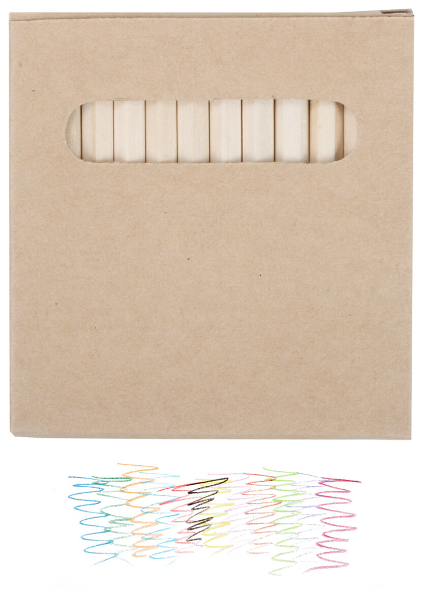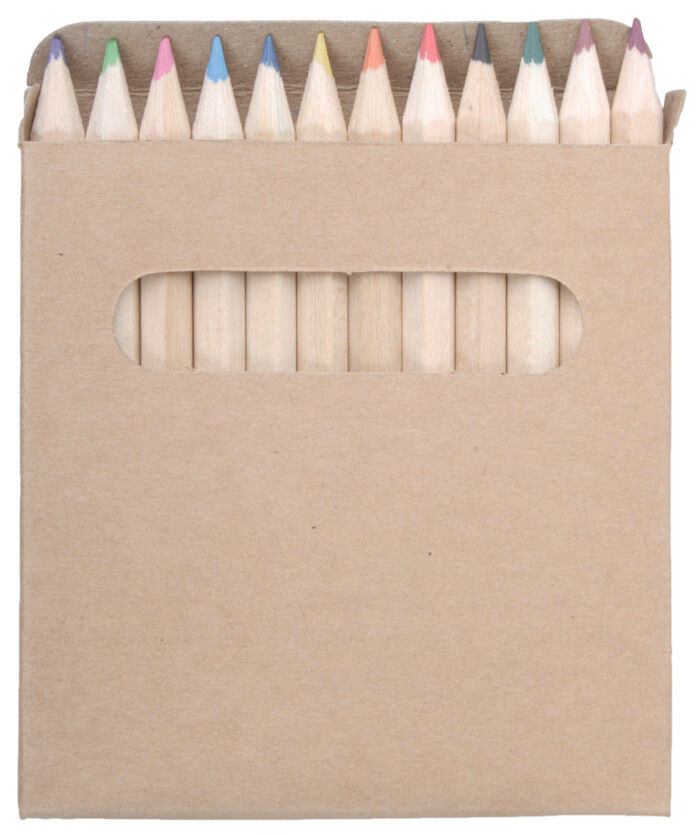 Dřevěné pastelky (12 ks) v papírové krabičce.