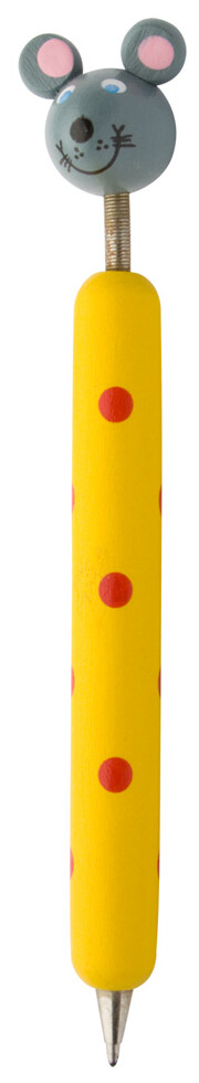 Dřevěné kuličkové pero s barevnou hlavičkou zvířátka, s modrou náplní.