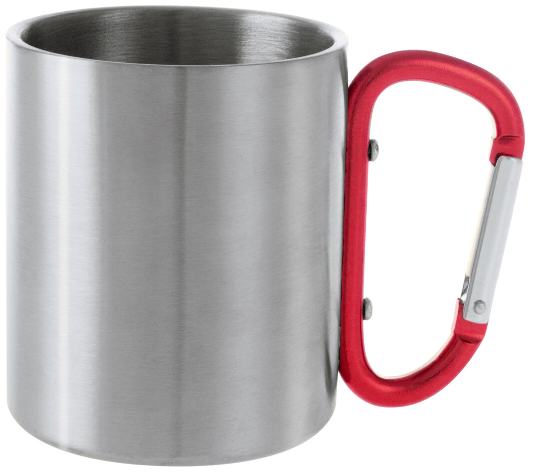 Nerezový hrnek s barevným karabinkovým uchem, 200 ml.