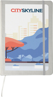 Poznámkový blok se 100 listy, záložkou a gumičkou.