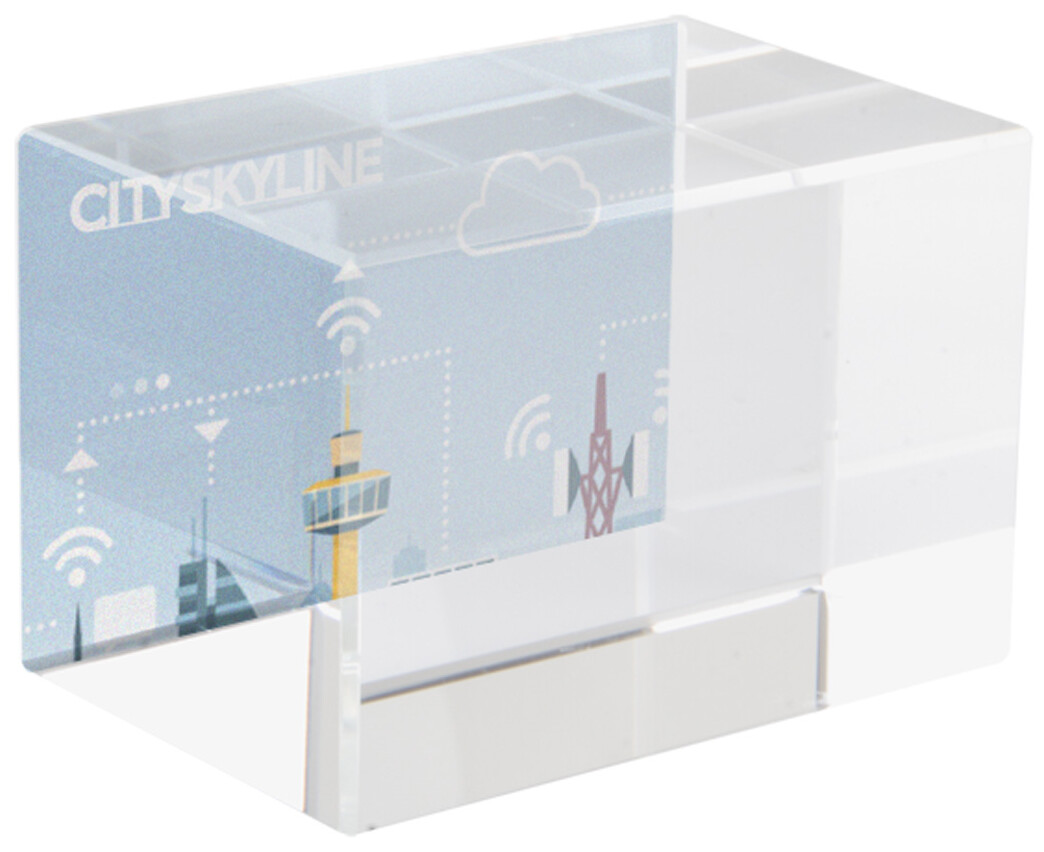 Skleněná krychle. Dodáváno v tmavomodré magnetické dárkové krabičce.