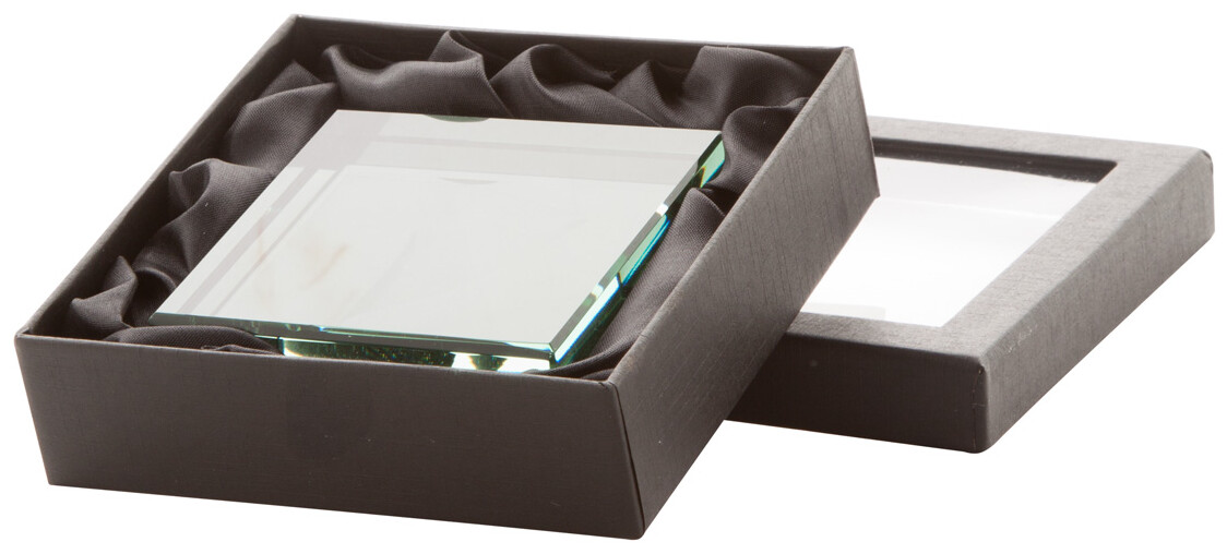 Obdélníkový skleněný blok. Dodáváno v dárkové krabičce s okénkem.