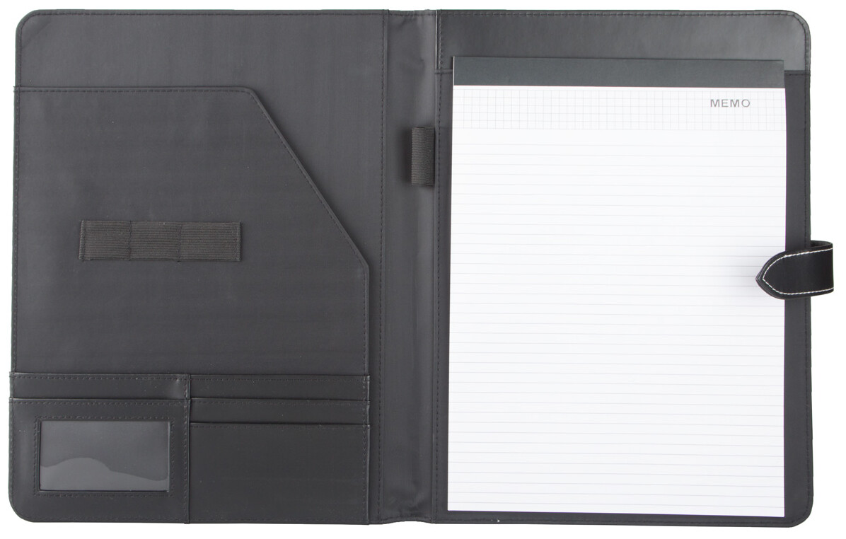 Sloha A4 na dokumenty z umělé kůže s 20 listým linkovaným blokem, uchycením propisky a přihrádkou pro vizitky.