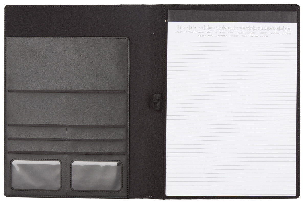 A4 sloha na dokumenty s deskami z PU kůže a plátna s kovovým štítkem a s 20 listým linkovaným blokem.