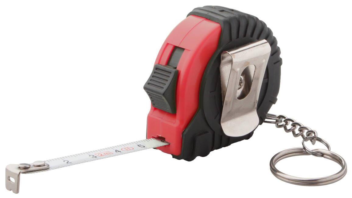 Plastový svinovací 2 m s aretací, kovovým klipem a s přívěškem na klíče.