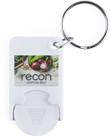 Plastový přívěšek na klíče se žetonem do nákupních vozíků.