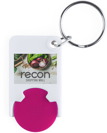 Plastový přívěšek na klíče se žetonem do nákupních vozíků.
