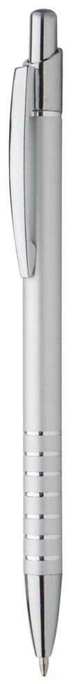 Hliníkové kuličkové pero s kovovým klipem a chromovanou špičkou a vrškem. Dodává se s modrou náplní.