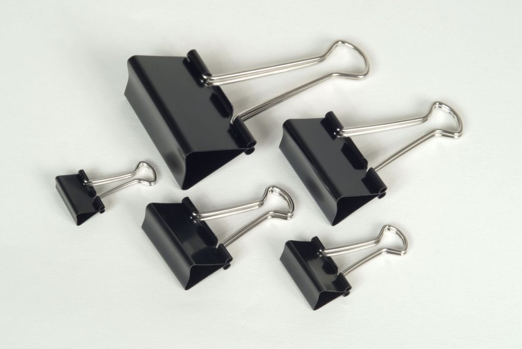 Kovové klipy pro sepnutí většího svazku papírů.