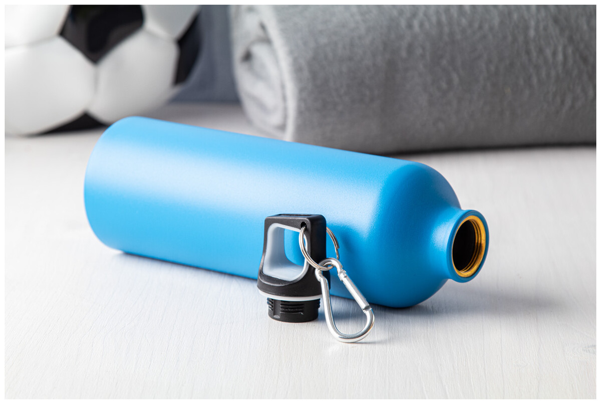 Hliníková láhev s matným povrchem a karabinou. 750 ml.