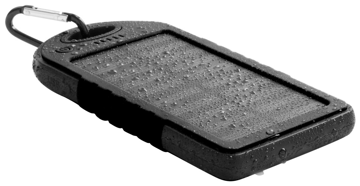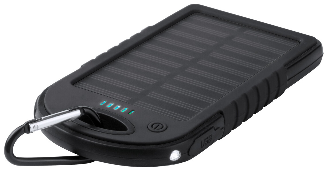 Plast/silikonová power banka s 4000 mAh baterií, solárním nabíjením a 1 LED diodou. Dodáváno vč. USB mikro kabelu.