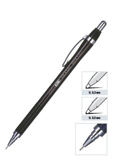 Vysoce kvalitní mikrotužka s kovovým klipem, tuha 0,3 mm nebo 0,5 mm.