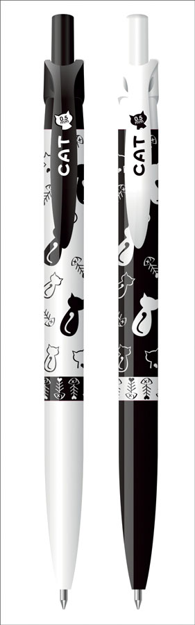 Kuličkové pero s obrázkama kočiček. Mikrohrot 0,5 mm. Dodávané ve 2 barevných variantách - bíločerné a černobílé. Náplň CONCORDE EXTRA, 0,5 mm, modrá.