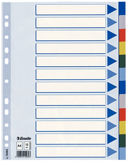 Rozřaďovač Esselte A4, mix barev, 12 listů