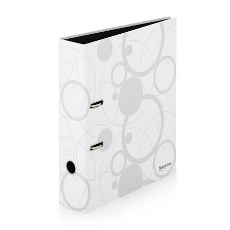 Pákový pořadač A4 v atraktivním designu Black&White, hřbet 70 mm, páková mechanika, rado, kapacita 675 listů, hřbetní kroužek, laminovaný povrch. Barva: bílá.