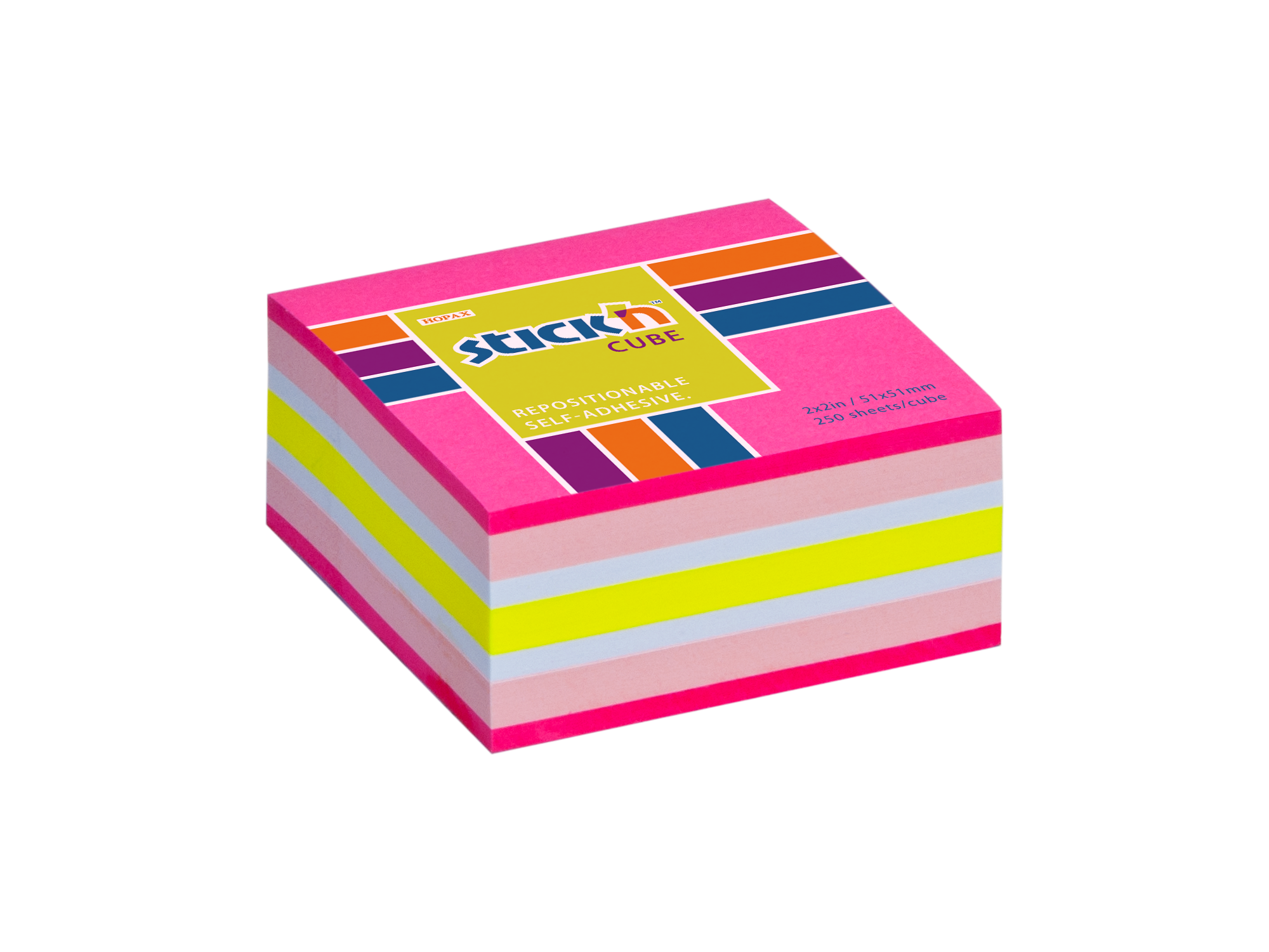 Samolepicí bloček kostka Stick'n by Hopax, 51 x 51 mm, neon růžový, 250 lístků