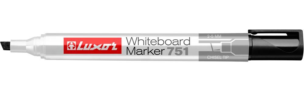 Popisovač LUXOR 751, je velmi kvalitní, vybaven zkoseným hrotem a snadno stíratelným černým inkoustem na alkoholové bázi, neobsahuje Toluen ani Xylen a díky tomu nezapáchá. Ideální na popisování tabulí a všech hladkých povrchů jako jsou sklo, glazová keramika, a jiné, z těchto materiálů text pak jednoduše smažete ubrouskem nebo speciální houbičkou. Šíře stopy 2-5 mm dle tlaku. Víčko s klipem umožní připnutí na desky nebo papír, zabraňuje také kutálení fixu z povrchů pryč. Za dobrých podmínek vydrží popisovač až 72 hodin bez víčka, Doporučujeme však pokaždé uzavřít.