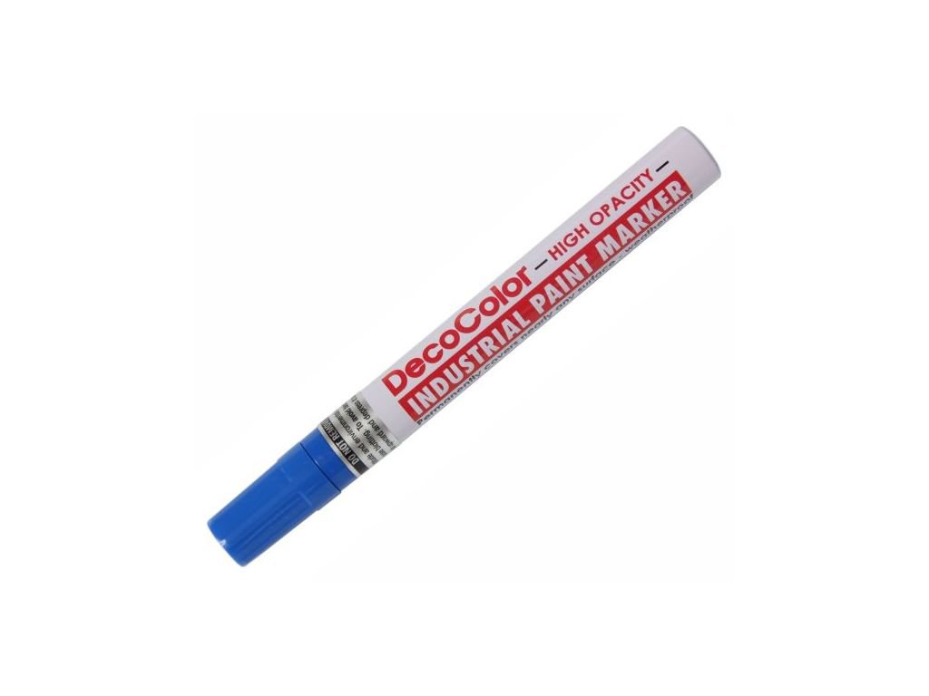 Lakový popisovač MARVY, je vybaven odolným kulatým hrotem, modrým inkoustem a stopou šíře 2-4 mm. Voděodolný, neprůhledný, velmi dobře kryje. Uvnitř fixu se nachází kovová kulička, která promíchá barvu a zamezuje jejímu vyschnutí. Vhodný pro průmyslové použití a na většinu povrchů jako jsou dřevo, sklo, plast, kov, papír nebo porcelán.