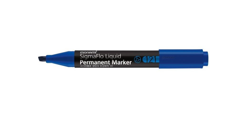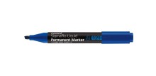 Permanentní popisovač s tekutým modrým inkoustem, má až 3 x delší výdrž než běžný, dobře drží na savých i nesavých površích, seřízlý hrot 1-5 mm, kulaté tělo. Výhodou tekutého inkoustu je - vizuální a sluchová kontrola stavu inkoustu - psací vlastnosti 100% do poslední kapky inkoustu jako např. u kuličkového pera - možnost nepřetržitého psaní v jakékoliv poloze.