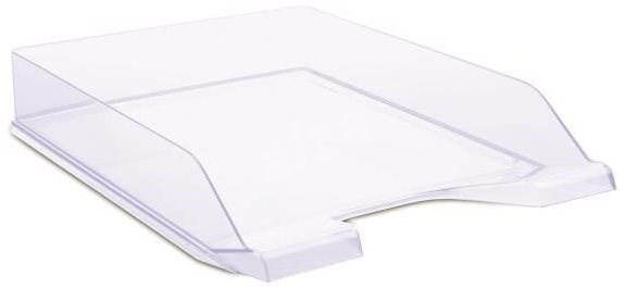 Pevný kancelářský odkladač pro organizaci dokumentů do formátu A4. Vyrobený z odolné kombinace polystyrenu a polypropylen - nárazu odolný, masivní. Snadné stohování na sebe nebo pomocí praktických zarážek kaskádově. Vnější rozměry: 254 x 60 x 346 mm, vnitřní rozměry: 244 x 43 x 325 mm. Barva: transparentní.